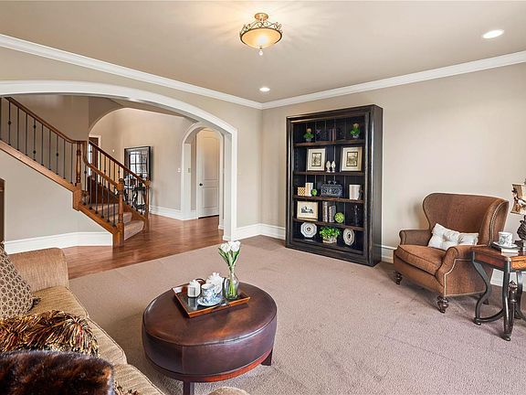 Striking 1.5 story Flower built home impressively shines w/timeless details, upgrades galore & an incredible floorplan. Spectacular views enhance the expansive one-acre yard backing to trees. Exquisite features such as arched doorways, crown molding, 9 ft ceilings & hardwood floors are noteworthy. The home's size & function fits perfectly w/today's lifestyle. The stunning kitchen is the heart of the home w/42" cabinets, granite, center island, gas cooktop, ss appliances, butler's pantry & breakfast room. The vaulted ceiling & fireplace are focal points of the hearth room adding to its warmth. The main floor master suite is an ideal place to relax w/jetted tub & separate shower. Upstairs has 3 bedrooms each w/walk-in closet & own bath plus a bonus space. The finished walkout lower level boasts a spacious family room, sleek bar, 5th bedroom & full bath. The amenities continue outside to the amazing deck area. Plus main floor laundry/cubbies, 3-car garage, sprinkler system...Easy to Show!