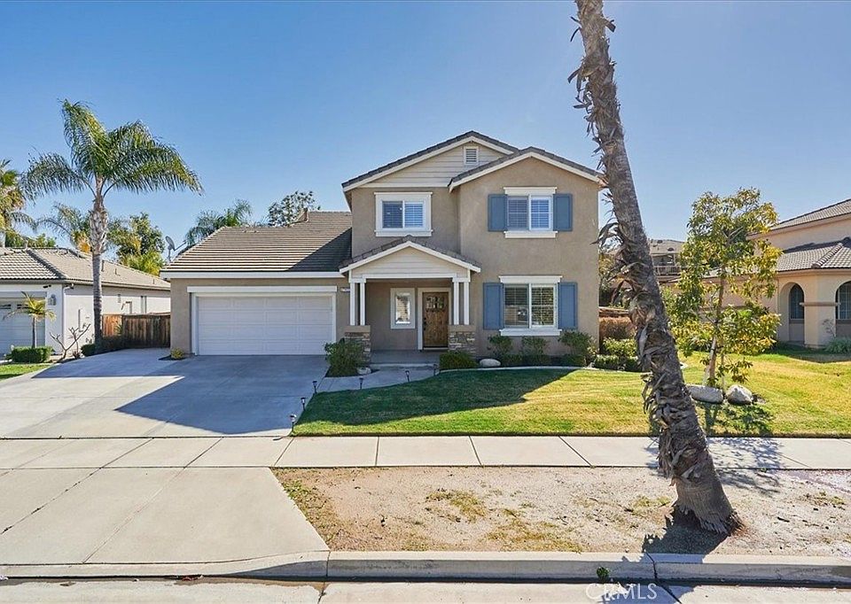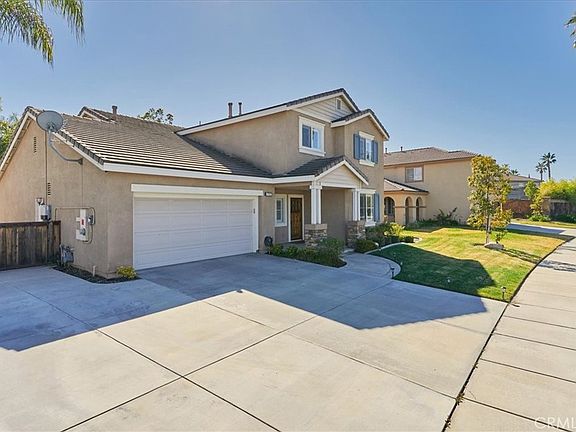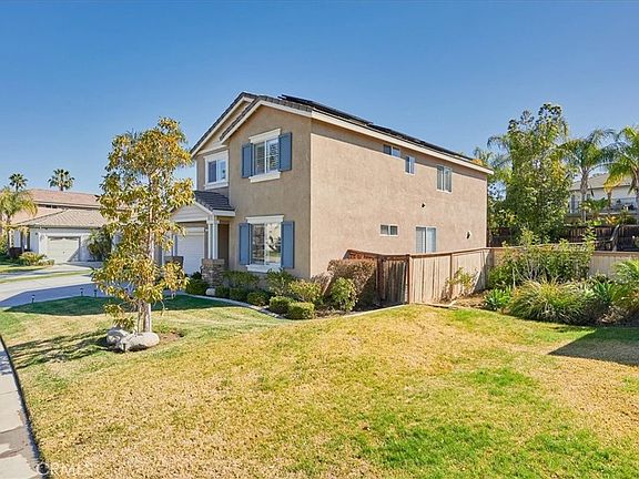 ABSOLUTELY STUNNING Victoria Grove Community home! Entering through the gates, you get the immediate sense & feel for the community the home is in. Alongside that entry road sits this stunner of a home. It looks and shows as if it were "THE" model home used by the builder when they launched this community and these homes new. Home boasts a full 2466 square feet, with 4 bedrooms and 3 baths. Home from front to back has been fully upgraded. Literally too many upgrades to list here (ask your agent for a complete list of upgrades attached to the listing). As soon as you walk in the newer (custom made) wood front door you can tell this home has been meticulously maintained and cared for. Absolutely beautiful master suite layout. Bathroom is semi-custom with all the accoutrements you would expect, including a soaking tub, and large tiled shower. Wonderful view out the back. Very private and peaceful retreat. Three bedrooms are upstairs and one is downstairs adjacent to bathroom. They are all a continuation of the rest of this fabulous home. Wonderfully large bedrooms each with their own privacy. Plenty of bathrooms to service all the bedrooms. Kitchen is spectacular! Perfectly centered in the middle of the home. Able to serve casually in connecting family room, or formally in dining room. Landscape is complete with a watering system around the entire home supplying all the lawns and planter beds. Backyard starts with a covered patio that folds right out to the unmatched lawn that makes you feel like you are at a luxury resort. Large 3 car (tandem), completely finished, garage with plenty of room for cars and/or extra storage. Community amenities include: a children's park, walking paths, swimming pool, playground and a basketball/sports court. There are many parks nearby, as well as hiking trails and recreational activities. Home is within the highly desirable school district of Lake Mathews & Riverside Unified. This beautiful, gated community home is located close to Galleria at Tyler, Dos Logos Shopping Center, and Victoria Grove Produce Market. This is truly a wonderful home & community. Hard not to fall totally in love with this home & community. The pictures and virtual tour are great but no substitute for seeing the real thing. Once you put your feet on and in this property, and on the wonderful grounds of the Victoria Grove Community, your home shopping will be over. Truly a must see!!!!!