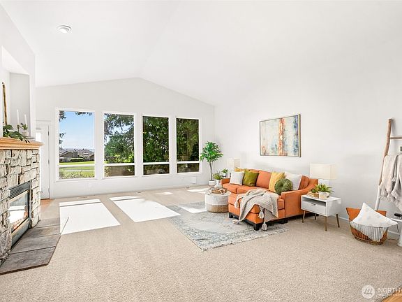 Tucked along the second hole of Gleneagle Golf Course, this beautifully maintained home offers comfort, tranquility, and convenience! Located near Lakewood Crossing with easy access to I-5 and Hwy 9, it features gleaming hardwoods, sunlit living spaces, a cozy fireplace, and stunning golf course views. The kitchen boasts granite counters, ample cabinetry, an island, and a breakfast nook. Enjoy peaceful afternoons on the private patio, perfect for entertaining or relaxing. The spacious primary suite includes vaulted ceilings, a walk-in closet, and a luxurious 5-piece bath. Two more bedrooms share a jack-and-jill bath. Near Arlington, with shopping, dining, outdoor recreation, scenic trails, and vibrant community events all just minutes away!