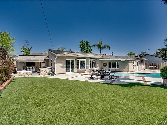 Welcome to 17922 Romelle Ave, located in highly sought after neighborhood in North Tustin area. This beautiful POOL home offers 4 bedrooms, 3 baths, an office, over 2400 sqft of living space, great curb appeal & 11,600 sqft lot with space for large gatherings. The elegant family room features high ceilings, marble fireplace, hardwood flooring & a large skylight offering great natural lighting. The "entertainers" kitchen features travertine flooring, custom cabinets, granite countertops & backsplash, large walk-in pantry, upgraded stainless steel appliances, double oven, large kitchen island, and extra large windows with great views of the resort like backyard - ideal for entertaining! The master bedroom is generous in size & offers a large walk-in closet. The 4th room is located on the opposite side of the home offering plenty of privacy & 3rd bathroom. The long hallway features custom built in shelving & a skylight for natural lighting. The gorgeous entertaining backyard features a sparkling pool, artificial grass easy to maintain, built-in Bbq with direct access into garage, large shed, & plenty of room for a party. Other features include built-in cabinets in garage, whole house water softener, ceiling fans in every room, indoor laundry with sink, automatic pool filler, crown molding throughout, & much, much more! Close to schools, shopping, and freeways.