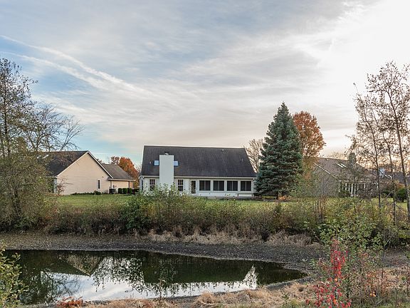 Fall in love with this charming 3bd / 2ba ranch style home overlooking 4th fairway of Pebble Brook Golf Course. This recently updated home features stunning great room/dining room w/ vaulted ceilings, skylights, gleaming hardwoods, cozy wood burning fireplace, all adjacent to oversized sunroom, overlooking golf course. Open kitchen w/ raised ceilings, white cabinets, new counter tops, w/ light and bright nook area. Owner's retreat w/ raised ceilings, spacious shower, walk-in closet and patio door leading to sunroom. Large 2nd Bedroom features view of course. 3rd Bedroom/Den has built-in bookshelves and much more. Private rear yard with oversized deck and custom patio, all overlooking scenic pond and 4th fairway. Fresh paint and new carpet throughout. Storage area in garage along with work bench and built-in cabinets. This is a must see!