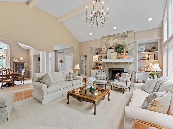 Step into the pages of a storybook with this French-inspired equestrian estate on 6.7+ acres in Wildwood! The property boasts a 4-stall barn, riding ring, and pasture. The residence designed by Dick Busch exudes privacy and abundant natural light throughout. The great room's towering stone fireplace and expansive windows integrate into the natural landscape, framing its wooded surroundings and flowing into an elegant dining room for formal gatherings. The custom kitchen incorporates breakfast and family rooms, which open onto a stone patio. Retreat to the main floor primary suite, a luxurious escape with vaulted ceilings and a spa-inspired bathroom. Upstairs are two bedrooms, a recreation room, and a full bathroom. A finished lower level adds additional recreation areas. Outdoors, a country oasis with open patios and sprawling spaces offers a peaceful respite...your private sanctuary awaits! Additional Rooms: Mud Room