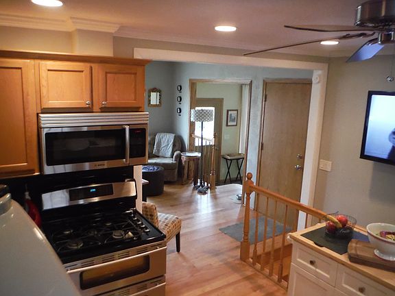 Completely updated. Granite counters in kitchen, high-end stainless appliances. Oak flooring, newer carpet. Tons of storage. 2 outbuildings. Private backyard with awesome shade canopy from 30+ year old oak and maple trees. Close to the city but quiet country living.