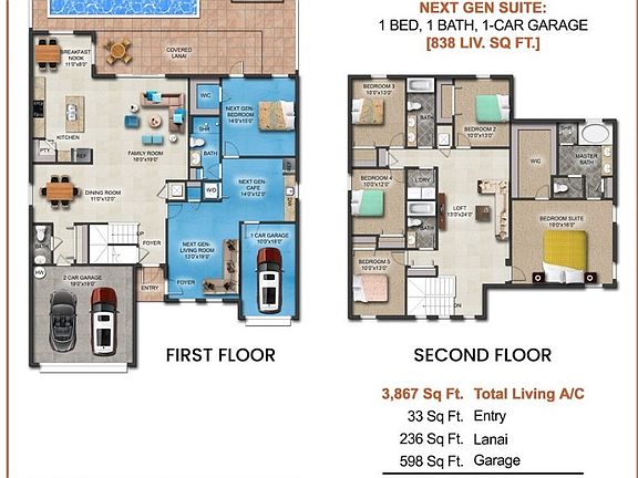 Don't miss the chance to own a stunning home in Babcock Ranch, America's first solar-powered town! This spacious and luxurious property features two homes in one, perfect for multi-generational living or a home business space. The main home with 6 bedrooms, 5 bathrooms, a 2 car and 1 car garage, and over 4700 sq ft of living space. The custom kitchen is fully upgraded with stainless steel appliances, granite countertops, and elegant tile & luxury vinyl flooring throughout.