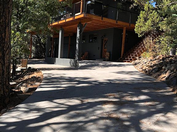 Located on Silverlake Drive this lot sides with Coconino National Forest with access to Crystal Point hiking trail. Completely remodeled in 2017, 3 bedroom plus private guest suite, 3 1/2 bath. Quartz countertops throughout with soft close cabinets in both kitchen and bathrooms. Wood laminate flooring throughout the home. 2 sided fireplace and new wood burning stove. 2 car garage with storage room and 1/2 bath. Tankless water heater. Starlink internet. New deck with large covered area built in 2020 with one of the best views in Munds park. Photos Coming