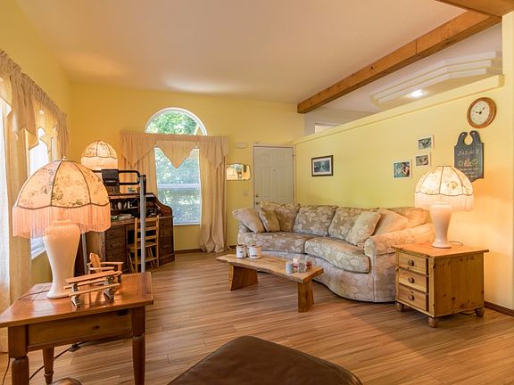Gorgeous home nestled back on 26.73 acres. This home features an open floor plan, vinyl floors throughout, vaulted ceilings and exposed beams. Master suite has french doors, large walk-in closet and garden soaking tub. Kitchen features cook top island with bar seating. Enjoy the multiple decks outside, great for entertaining in the park like setting. Property is gated with a 36x40 pole barn and a 2 car garage.