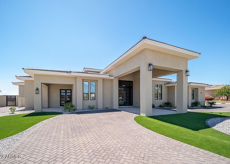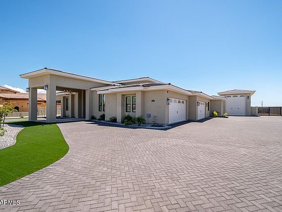 2023 New Build 4 Bed 3.5 bath, 4 car garage in main home with a 2 bed 1 bath guest house connected to a 17'x45' RV garage on almost a full acre lot! Upgraded 2x6 construction home with energy efficient spray foamed walls and ceilings, low maintenance desert/turf front and back yard landscaping, gourmet kitchen with built in custom appliances, oversized gas range with double ovens, custom designer range hood, luxury quartz counters in kitchens and bathrooms, oversized kitchen island with extra storage, butler style panty with custom shelving, quartz counters/wet bar area, oversized tile throughout main home and guest house, designer tiled bathrooms with elegant hardware, upgraded lighting throughout, ceiling fans, custom shutters, full pavered driveway, large covered patios for outdoor entertaining, spacious open floor plan, and move in ready!!