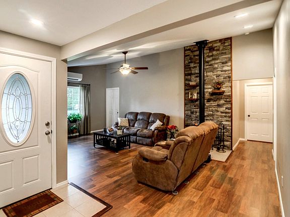 Welcome to this better than new 1/2 acre home that features a completely remodeled kitchen with new cabinets, countertops, backsplash & stainless steel appliances. Cozy wood-burning fireplace in living area. Airy master with updated bath & oversized shower. New carpet & flooring. Newer roof & heat pump. Large backyard with a 16 ft. x 8 ft. outbuilding and a fire pit. All appliances, cart and lawnmower included. Corner lot with lots of room for parking extra cars or RV. Community features clubhouse, playgrounds, and a pool for entertaining.