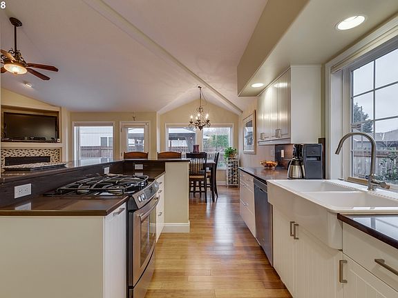 This beautiful three bedroom, two bathroom home boasts pristine landscaping and tasteful updates, all on a desirable corner lot. Features include a large sunny living room, high ceilings, hardwood floors, stainless steel appliances, bead board cabinetry, quartz counter tops, custom tile fireplace, large fenced backyard. Master bedroom vaulted ceilings, exposed beams, lots of bright, natural light, and truly a gorgeous en suite bath.