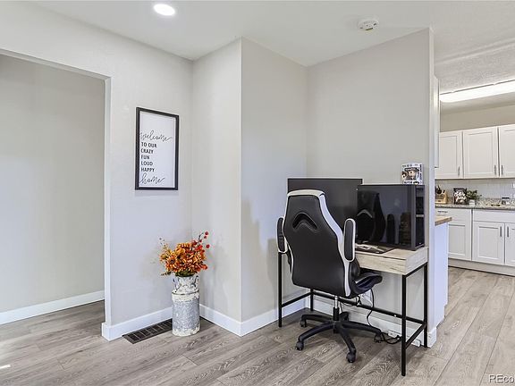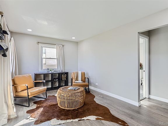 Welcome to this fully renovated ranch bungalow situated on a prime corner lot within a fantastic block. Boasting 3 bedrooms and 1 bath, this home offers an open layout that includes a formal living room, dining room, kitchen, and family room featuring a charming wood-burning fireplace. With abundant white cabinets, a gas stove, granite counters, stainless appliances, laminate flooring, and new carpet, this residence is as cute as they come. Ideal for entertainment and recreation, the spacious backyard has undergone a complete transformation with a 6-foot privacy fence, new sod, sprinklers, lights, fire pit, covered porch, and an 8x12 shed. The separate laundry room, complete with a new washer and dryer, is conveniently located off a mudroom with storage. Additional features include new interior and exterior paint, a security system, and a smart thermostat. With convenient off-street parking, this home is strategically positioned near Stanley Marketplace, parks, Children's Hospital, the VA Hospital, Buckley AF Base, Anschutz, I-225, and I-70. Don't miss the opportunity to see this rare gem!