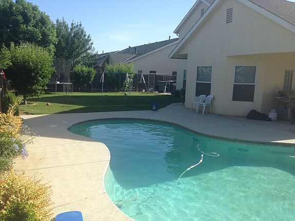 This beautiful 5 bed, 3 bath home is located walking distance to three schools (elementary, junior high, and high school) in the prestigious Clovis Unified School District. There is a great family park directly across the street. This home features an open floor plan, ceiling fans, dual pane windows, drive through 3rd car garage. The kitchen looks out over the park. The main floor also features an isolated bedroom with bathroom adjacent to it. Upstairs features a large master bedroom with a walk-in closet and attached bath, three additional bedrooms with a Jack-and-Jill bathroom between two of them, and the laundry room. A spacious backyard with a refreshing pool tops off this great family home!