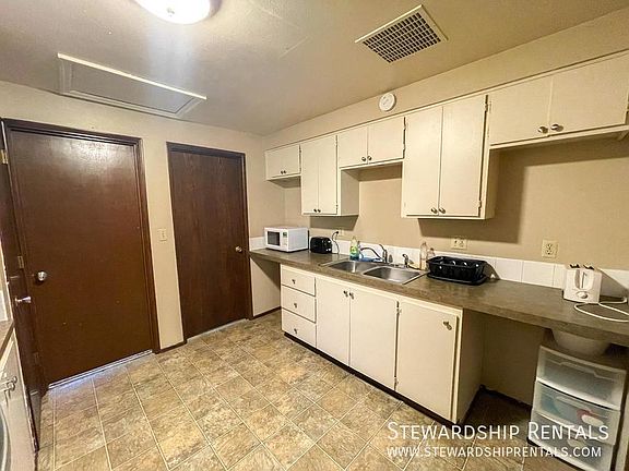 Just a quick walk to U of O Campus! Very nice efficiency studio in small complex with private bathroom, private outside entrance and individual refrigerator. The kitchen is shared with the 3 other adjoining rooms. $30 monthly utility fee covers water, sewer, and garbage. Residents are responsible for electric. Limited free parking! *Properties are only shown to approved applicants* Apartment Ceiling Heat Close To University Of Oregon Efficiency Studio Limited Free Parking No Pets Allowed Private Bathroom Shared Kitchen Upstairs Vinyl Plank Floors Vinyl Windows