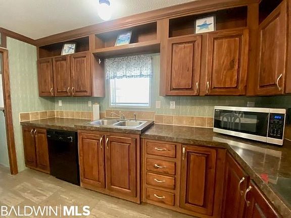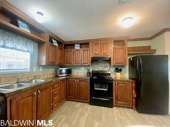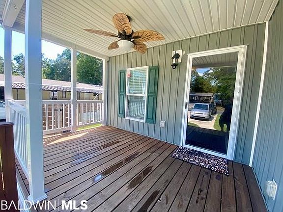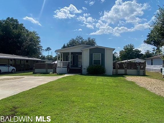 Wonderful home in desirable Spanish Cove neighborhood on a quiet street! Front porch welcomes you and will be a great place to relax and enjoy the sunrise or sunset! This home is move in ready and partially furnished. Family room is full of natural light and open. Kitchen has eat-in area, lots of counter space and cabinets. Nice large master bedroom and master bath has soaking tub, double sinks and walk in closet plus an additional large closet. Additional bedroom is near hall bath. Furnished items include queen bed with 4-inch pad, 2 side tables in living room, 2 side tables in bedroom, 2 lamps, reclining chair, armoire, padded chair, kitchen table and chairs, washer, dryer, fridge, stove, microwave, 2 TV’s, vacuum and miscellaneous kitchen cooking items. Plus has 10x10 shed with electricity, RV pad has full hookups 30 amp and gated boat storage. Spanish Cove has great amenities to offer private fishing pier, year-round swimming pool, tennis, shuffleboard and many community events. Home is located close to Florida and Alabama beaches; Lillian boat launch is only a couple miles down the road. Also conveniently located to restaurants and shopping. This one won’t last long.