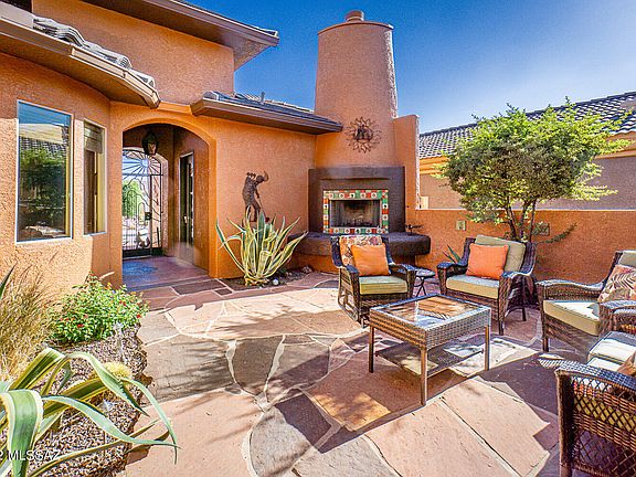 A HOME THAT FITS YOUR LIFESTYLE! Stunning MOUNTAIN and GOLF COURSE VIEWS from this absolutely GORGEOUS FULLY FURNISHED home with CASITA and POOL! Prepared to be impressed by the comfort and elegance this 2260 sq ft home offers. Enter through the lovely central courtyard with Beehive fireplace and flagstone into the circular vestibule. Ample living area with double set of French doors that open to the courtyard. Beautifully appointed kitchen with Granite counters, Slate appliances (2018), plenty of cabinetry, wine cooler, breakfast bar and breakfast nook. Split floor plan offers a spacious Master suite with MOUNTAIN views, walk-in closet and luxury bathroom fitted with double-vanities, soaking tub, and walk-in shower. Additional bedroom on main house plus desirable Den/office for extra