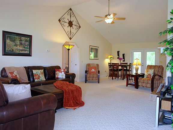 Charming home sits on .89 of an acre with trees galore and area for a garden. 1930 sq.ft. 3BR/2.5 BA and oversized 2-car garage. Features a large covered front porch, vaulted ceiling, cozy gas-log fireplace, dining area, kitchen with lots of cabinets, pantry and sunroom. Split floor plan, master with double vanity. Natural gas heating and Electric cooling. Partially covered 36' x 12' deck and a 2nd deck adorn the back of the home. Enjoy your country home, close to Crossville.