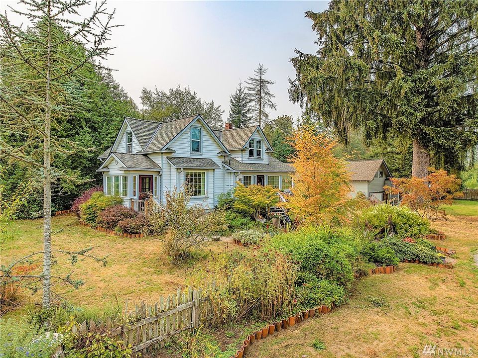 {1906 Farmhouse on 2.52 Acres} Beautiful Home with original character features updated wiring, plumbing, heating/cooling, roof, windows and siding. Acreage is flat and useable. Detached shop, chicken coop & milk barn/storage. Master bedroom on the main floor- 3 additional bedroom upstairs & an additional room. Enjoy coffee in the east facing sunroom overlooking the gardens. Lakewood School District. Close to all amenities-shopping/dining/transportation.