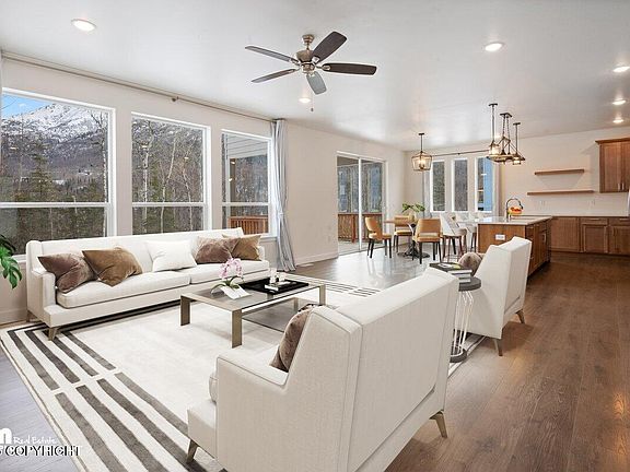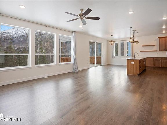 Like New Hultquist Home w/Upgrades Galore in Desirable Eagle Pointe! Light & Bright Home w/ ER Valley/Chugach Mtn Views. Open Kit/Dining/Living Concept w/Chic Design Features. Fully Finished Walk-Out Basement w/Kitchen- Perfect MIL/Guest/College Suite. Extra 840 sf U/F Storage Area. Beautiful Upper Level Primary Suite w/ VIEWS, Barn Door to WIC & Private Ensuite. LVP, Tasteful Fixtures, See MORE.5 Star Plus Energy Rated Trex Decking 2-Panel Doors Latch Handles Rocker Switches Tall Ceilings & Wide Hallways On Demand Water Heater Main Level- Spacious Entry w/Powder Bathroom & Garage Access; Generous Living Room w/Cozy Gas FP; Dining Area w/ Door to Upper Back Deck (Deck w/BBQ Gas Stub Out!)- Wall of Windows Highlight Mountain Views! Kitchen Boasts 42" Hickory Cabinets (Soft Close Drawers & Cabs(, Floating Shelves, Pantry, Quartz Counters & Large Center Island, Subway Tiled Backsplash, SS Induction Cooktop, SS Beko Dishwasher, SS Frigidaire Gallery Refrigerator, Extra Deep Sink, LG Microwave Oversize 3-Car Garage w/Mandoor, Hot/Cold Water Spigot, Heated, Pulley and Wall Mounts for Storage Upper Level- Primary Bedroom w/STUNNING Mtn Views, Barn Door to Walk-In Closet through to Private Ensuite w/Dual Sinks, Stand Alone Soaking Tub, Granite Counters; 3 Additional Bedrooms & Full Bathroom Lower Level- Separate Heat Zone, Laundry Area w/Storage, 840 SF Storage Room (unfinished), Large Versatile Rec Room w/Custom Built-In King Murphy Bed, Walk-In Closet, Full Bathroom, Kitchen w/42" Maple Cabinets, Evica Vented 5- Burner Range, Quartz Counters, Microwave. Sliding Door to Backyard- Covered Deck/Patio. Beautifully Landscaped Yard, Fire Pit, Built-In Stairs to Lower Yard Area for Easy Access