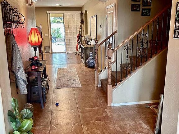 BACK ON THE MARKET. This gorgeous 5-bed, 4-bath residence has it all and is located in the coveted neighborhood of Cortessa! The impressive curb appeal offers a low-maintenance desert landscape, a 2-car garage, and a custom wrought iron & glass entry door. Inside we find 2 primary suites, 1 upstairs and 1 downstairs! Downstairs has a well-sized bedroom w/a private ensuite ideal for overnight guests or in-laws and full bath. Plantation shutters, and wood-plank tile flooring in all the right places. Host a feast in the large dining room. The kitchen features granite countertops, SS appliances, a convenient island, and tons of storage thanks to its abundant cabinetry. Relax and entertain in a low maintenance backyard with a covered patio, a built-in bar and BBQ, travertine and HEATED POOL The massive loft is great for a game/entertainment center. The primary bedroom on the upper level has a lavish ensuite w/a large dual sinks vanity, a relaxing jetted tub, and a sizable glass-enclosed shower. The spectacular backyard is comprised of an outdoor kitchen, a large bar, travertine floor, and a refreshing pool. Across the street from one of the community parks & close to the main Cortessa Park. You don't want to miss this rare find. Inquire today!