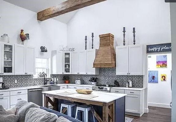 Welcome to an extraordinary residence that effortlessly combines modern elegance with the tranquility of nature. This stunning three-bedroom, 2.5-bathroom split-level home, built in 2020, sprawls across 10 acres of picturesque landscape, offering a perfect blend of luxury and serenity. Upon entering, be greeted by the grandeur of 20-foot ceilings, creating an open and spacious ambiance that is both inviting and awe-inspiring. The open concept floor plan seamlessly connects the living, dining, and kitchen areas, adorned with commercial-grade vinyl plank flooring that adds a touch of sophistication. The heart of this home lies in its gourmet kitchen, featuring quartz countertops, a large custom island, and top-of-the-line appliances. Perfect for entertaining, the kitchen overlooks the outdoor oasis, complete with an outdoor kitchen boasting a gas grill and fridge. Imagine hosting gatherings under the stars, with a four-person hot tub nearby and an outdoor fireplace creating a cozy atmosphere. The masterful design extends outdoors, where a 24'x30' workshop awaits, along with a bridge leading to a private island in the middle of a large stocked fishing pond. The pond's aeration fountain system not only enhances the view but also contributes to a vibrant ecosystem. Safety and security are paramount, with a built-in Bluetooth security system and an inground storm shelter for added peace of mind. The home is fully spray foamed, ensuring energy efficiency, while central heat and air provide year-round comfort. The interior exudes warmth with natural wood accents, creating a harmonious connection with the surrounding nature. The large closets and ample storage space cater to practical needs, ensuring a clutter-free environment. This remarkable property, encompassing 3020 square feet, promises a lifestyle of luxury, comfort, and outdoor enjoyment. Welcome to your own private paradise!