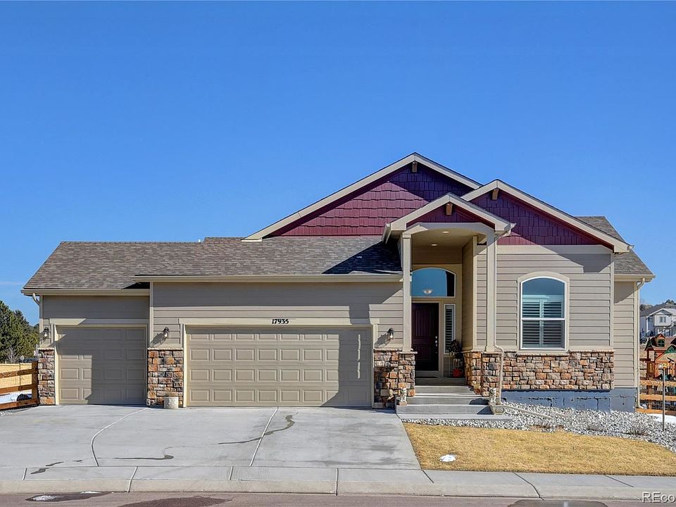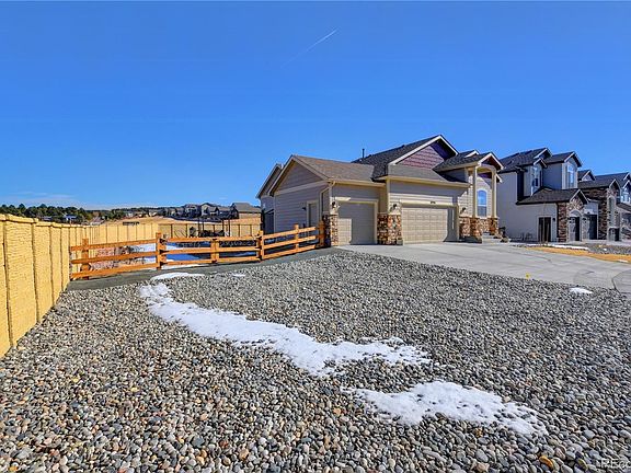 Beautiful Ranch Style Home in Village Center at Woodmoor. Sit in your backyard and enjoy a beautiful view of the Rampart Range Mountains. This home has all the amenities and upgrades!! Custom Shutters on Main Floor , Granite Countertops throughout home, Stainless steel appliances, Gas top range, Kitchen island with counter bar, Wood laminate floors, Upgraded doors throughout interior, Fireplace with built in Fan, High Ceilings throughout, Electrical Switch ready for Fireplace install in Main Suite Bathroom! The lower level features 2 large bedrooms, a full bath, and a family/TV/game room with extra storage & plumbing rough in for bar. 3 car EXTRA LARGE attached INSULATED garage with a 220 hook up, Extra 110 outlets, and a Hot and Cold water hook up!! Furnace already cleaned and inspected!! Large concrete patio, Xeriscape in Back yard with returning Perennials, Double 6' gate with a 12' opening & Large Corner lot in cul-de-sac. 1/2 a mile to Bustang and Groome transportation! Easy access to I-25 and all amenities. K-10 Monument academy across the street. This home is Turn key and move in ready!