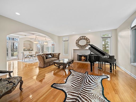 Nestled behind a gated entrance and down a private driveway adorned with a majestic fountain lies 17935 Haas Road, Mokena, IL 60448. This sprawling 4.5-acre estate boasts 9,775 square feet of living space, including 5 bedrooms, 7.1 baths, 4 fireplaces, and a 4-car garage capable of accommodating 6 cars. As you step into the dramatic two-story foyer entryway with vaulted ceilings adorned with a stunning stained-glass dome, the essence of elegance envelops you. The spacious living area boasts a majestic stone mantel fireplace, while the formal dining room offers access to a wrap-around deck, providing picturesque views of the meticulously landscaped grounds and inviting pool area. The heart of this home, the kitchen, is a culinary haven featuring sleek white cabinetry and top-of-the-line Viking appliances, striking a perfect balance of beauty, comfort, and convenience. It seamlessly connects to the family room, adorned with another impressive stone fireplace, and a second eating area, ideal for casual dining or entertaining guests. Each of the five bedrooms is a spacious suite, complete with its own private bathroom, ensuring unparalleled comfort and privacy. Hardwood floors grace the entirety of the home, adding warmth and sophistication, while a loft space offers versatility for various needs. The lower level of this home is designed for entertainment and relaxation, featuring an exercise room, theater room, and a well-appointed bar area to satisfy any beverage preference. With walkout access to the patio and the inviting swimming pool, waterfall/firepit and private pond this level seamlessly blends indoor and outdoor living, creating the ultimate space for leisure and recreation. From its exquisite design elements to its array of upscale amenities, this property exemplifies luxury living at its finest. Those who have the privilege of inspecting this home will immediately recognize its exceptional value and the extraordinary lifestyle it offers.