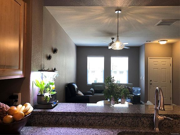 You will break away from the pack with this 3 bedroom, 2.5 bath townhome. Not just another townhome. The fun begins when you move into this freshly painted home. Here's why: Newer carpet, open family room, dining combo with lots of natural light. Large breakfast bar with granite top, granite kitchen counter tops that are irresistible, new kitchen with charming kitchen cabinets, all bathrooms have been upgrade with granite tops, new toilets and flooring. The front porch has just the right touch. Newer appliances. Well maintained townhome with a 2 car attached garage. Amenities include a community pool, fitness facility and resort style community club house. Tower road has been upgrade with cycling lanes for miles, trails and beautiful lakes nearby. Quick access to the airport off e470 or tower road Experience the wonders of the Reunion community. There is a small contingency. Seller has purchase a new home that will be completed and closed at the end of July 2018. Hurry!!!