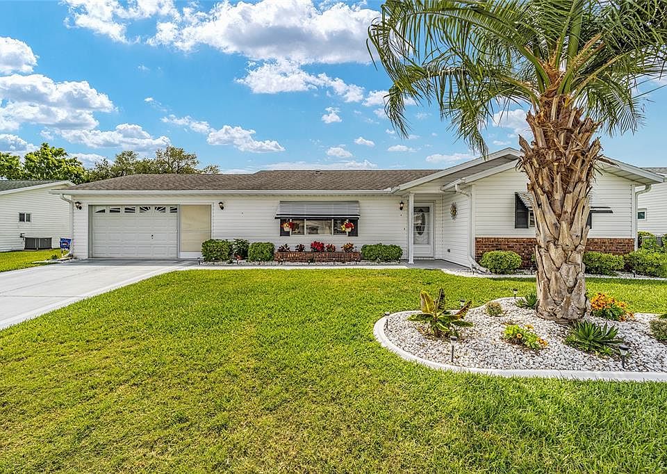 This IMPECCABLY maintained PALM model in the popular neighborhood of SPRUCE CREEK SOUTH will more than meet your expectations. It's TURNKEY (Furniture List available) with beautiful furniture and window treatments. It's packed with Upgrades. The kitchen cabinets have Crown Molding, a SOLAR TUBE for extra lighting, under and over cabinet lighting, QUARTZ Countertops, Upgraded LG appliances, 2020 Samsung Refrigerator and the Soft Touch drawers complete this adorable kitchen. The Lanai is enclosed with acrylic windows and provides a great space for puzzles, reading and relaxing and a patio for grilling is attached. This home also has split bedrooms. The LARGE 2 CAR GARAGE (26 x 20) has a pull across Screen, Built in Cabinets, Refrigerator, Utility sink, 2 Ceiling Fans, Painted Floor and is complete with LG Washer and Dryer. The yard is beautifully landscaped and also includes an IRRIGATION SYSTEM. NEW ROOF COMING-2024 - HVAC-2015, MAINTAINED ANNUALLY - WATER HEATER- 2014 - WATER FILTRATION SOLD AS IS - GOLF CART SOLD SEPERATELY - THIS IS THE HOME YOU'VE BEEN WAITING FOR! COME SEE IT AND IT WILL FULFILL EVERYTHING ON YOUR CHECKLIST *ALL MEASURMENTS ARE APPROXIMATE*