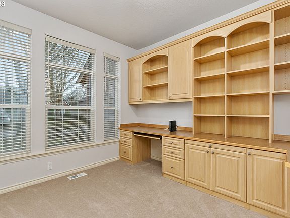 Original owner and on one of the most desired streets in Woodhaven neighborhood.Sun filled stunning immaculate home located on oversize lot which backs to green space.Features include inlaid hardwood floors, vaulted ceilings,3 full baths, 2 offices, Bonus room upstairs, french doors, built ins, Large primary suite with dbl sided fireplace, custom lighting, central vac, new paint and carpet, South facing sunny kitchen and eating area, walk in pantry, Plus oversized 3 car garage with large shop.