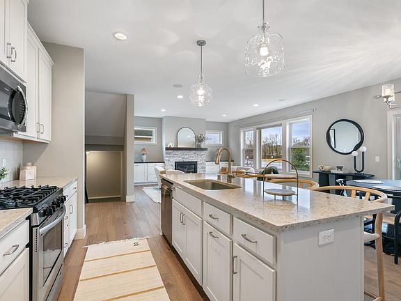 Better than new and move-in ready! This stunning 5-bedroom, 4-bath, 2-story home in Lakeville's desirable Pheasant Run neighborhood features a beautifully finished custom walk-out basement. The open-concept main floor boasts engineered wood floors and a bright, spacious living area. The kitchen is a chef's delight with quartz countertops, a large center island, a walk-in pantry and a dining room that easily accommodates a full size table. The basement is designed for exceptional entertaining, featuring a luxury media wall, expansive wet bar, glass and tile enclosed steam room and a cozy gas fireplace, perfect for hosting friends or enjoying a quiet night in. Step outside to a stamped concrete patio leading to a fully fenced backyard. A versatile flex room off the dining area can serve as a playroom, office or hobby space. The mudroom, located off the heated garage, includes a custom walk-in closet, while the adjacent laundry room is equipped with a convenient pet washing station. Upstairs you'll find four generously sized bedrooms, including the primary suite, which features a custom walk-in closet, double vanity, tiled walk-in shower and a private water closet for added privacy. This home seamlessly blends comfort, convenience and luxury. Welcome Home!