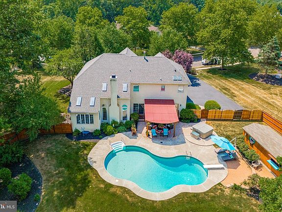 This is truly the one you have been waiting for! Fabulous floor plan with an abundance of square footage! 4 bedrooms, 2.5 baths, 2 offices; exercise room, butler's pantry plus so much more! This regal home sits looking out over this beautiful community "Prancing Horse Farm". Beautifully manicured lawns, professionally landscaped, and mature trees, you have a perfect backyard oasis waiting for you. The first floor offers many entertaining and functional options. Formal living room or office; formal dining room with hardwood floors; second private office or den; exercise room or sunroom; PLUS family room with stunning stone wood burning fireplace and vaulted ceilings. The kitchen overlooks the family room with stainless steel appliances, a center island, granite countertops, and a butler's pantry. The first floor is rounded off with a powder room and laundry room with added cabinetry. The second floor includes four spacious bedrooms. The owner's bedroom includes a large sitting room plus THREE walk-in closets! The owner's attached bathroom is naturally bright with skylights and updated modern touches. The second floor was finished with a centrally located and updated hall bathroom. More to come! Finished basement with bar, built-in gas fireplace with tons of entertaining area. Storage is not a problem here.... an additional unfinished storage area in the basement as well. Now the part you all have been waiting for. Head outside from the kitchen slider patio door .... an in-ground pool with pool house; freestanding hot tub; pergola stationed over the paver patio plus spring-fed pond and all on 1.5 acres! Your private oasis awaits! This lot is so quiet. Enjoy so much natural wildlife right on your property. Deer prancing, rabbits chasing, squirrels climbing, birds chirping .... This home begs you to gather with friends and family and relax! Three-car side entry garage. There is nothing left for your heart to desire. It is all right here on Morgan Lane.