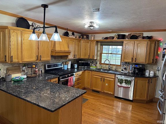 Check out this beautiful 3300 sq ft ranch on 2.09 meticulously landscaped acres. Take notice at the attention to detail throughout the home. Home features an expansive outdoor living space that creates a one of a kind atmosphere. 3 bd 2.5 ba, kitchen features oak cabinetry, master bath features custom slate tiled walk-in shower. Some new flooring and fresh paint throughout. Additional full bath features custom tiled floor and shower. Baths have been recently remodeled. Fully finished walkout basement adds additional living space. Basement space could include 2 additional bedrooms, office, bar and family room area. Solid oak woodwork throughout with granite & quartz countertops in the kitchen & baths. 24x30 pole building for extra storage.
