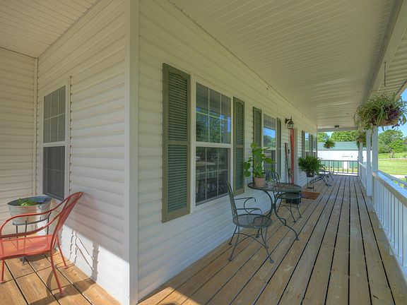 Discover the charm of country living with this beautiful classic farmhouse, nestled just on the edge of town! Offering 3 bedrooms and 2.5 baths, this home is a serene retreat with its wrap-around porch and peaceful country setting on approximately 8.51 acres. Ideal for a hobby farm, this property features partial fencing, vibrant flowers, fruit trees, & plentiful wildlife. Inside, you'll find a spacious living room with a wood-burning fireplace, perfect for cozy evenings. Entertain in style with a formal dining area and an open kitchen with extra dining space. The convenience of a half bath & utility room await just steps from the attached 2-car garage. The master suite is a true oasis, featuring a large bedroom and remodeled bathroom with walk-in shower and soaker tub. Upstairs, you'll find spacious bedrooms, which offer plenty of closet and storage space. Outside, enjoy a large 30X50 shop, with ample storage, 2 garage stalls, wiring for 220, along with a studio area plumbed for water and septic. An additional outbuilding is available for animal stalls or extra storage, and a storm shelter has been added for peace of mind. Great location! Convenient to Granby or Neosho & close to schools and amenities. Don't miss the opportunity to make this picturesque property your own slice of paradise!