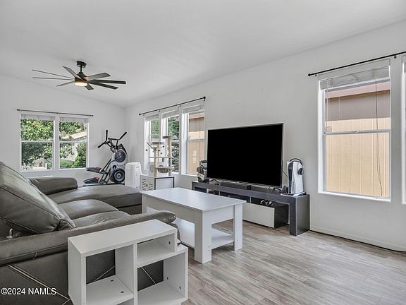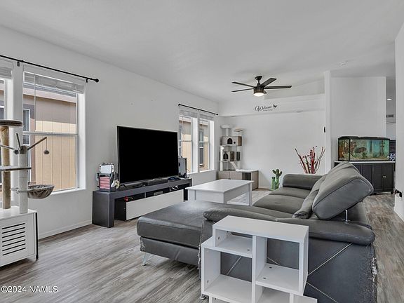 The wait is over for the EXCEPTIONAL single-level home in the sought-after West Village Estates neighborhood that you've been waiting for. Boasting 3 bedrooms and 2 bathrooms, this residence offers an inviting open floor plan with soaring ceilings in the living room, kitchen, and primary bedroom, encompassed by an abundance of natural light. The expansive living room and seamless layout make it an entertainer's dream. Inside, you'll find beautiful vinyl plank flooring throughout the main areas, modern countertops, stylish cabinets, and sleek stainless steel appliances. Step outside to the grassy backyard, complete with extra storage, a fenced area perfect for pets, and a spacious 2-car garage. Some of Flagstaff's best restaurants, shopping, and entertainment are only mere minutes away!