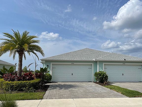 This beautiful Villa is located in highly desirable Babcock Ranch, the first solar powered town in America. Lots of upgrades with a great lakefront view. It features 2 bedrooms, and a Den that can easily be used as a 3rd bedroom if desired. Tile throughout the Villa, except the 2nd bedroom which is carpeted. 5 1/2” Baseboard, upgraded moldings around doors, chandelier in the dining area, additional ceiling lighting in 2nd bedroom and Den. Fan and Roller Shade in the screened in Lanai. Cabinet and wire shelf in the Laundry room. The garage features an insulated garage door and ceiling, A/C mini splitter unit, attic staircase, some attic flooring for storage, additional lighting, a tankless water heater and a work bench. Gorgeous landscape, full yard irrigation.