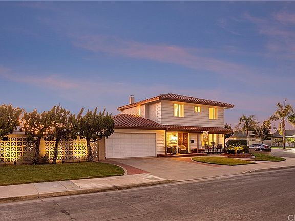 First time on the market since being built!!! Don't miss out on this stunning 2 story home that has been lovingly maintained by the same family for over 50 years. Situated on a large ~7000sq ft corner lot, this 4 bedroom 2 ½ bath home has been expanded and has plenty of room to add a pool or boat and/or RV parking. The large, fully permitted bonus room w/ fireplace is perfect for a man cave, guest suite, downstairs bedroom or family room opens up to the lush back yard through glass sliding doors. The outdoor area is perfect for entertaining featuring a large grass area, new gazebo, and screened in sunroom where you can relax to the sound of a tranquil water fountain. Other upgrades throughout the home include beautiful high end brushed oak wood floors upstairs, as well as fresh paint, updated landscaping, new water heater, bluetooth garage door opener and recessed lighting. Situated on a quiet street, located just minutes from the beach, Central park, the equestrian center, Bolsa Chica Wetlands and the highly sought after Hope View elementary school! This won't last long!!