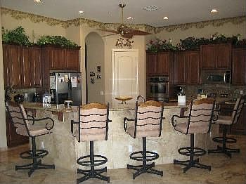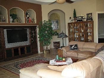 Simply stunning, with a desirable floor plan and back-yard oasis, this home will impress the discriminating buyer. Just a few of the many features include a stacked-stone fireplace, surround sound and custom built-in media wall in the great room; travertine flooring in the living and wet spaces, and engineered wood plank flooring set on the diagonal in the master BR. The 4th BR is currently used as an office, and features built-in bookcases, plank floor and wide his & hers desk. The cook's kitchen boasts slab granite counters, staggered cherry cabinets w/crown molding, stand-alone icemaker, pantry and breakfast bar w/travertine panels. The park-like backyard has a heated salt water pool with elevated spa & water feature, and large patio. The garage has epoxy coating and cabinets.