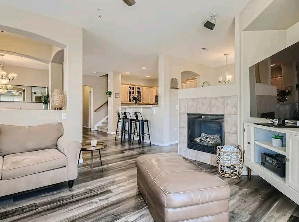 Welcome home to this delightful fully furnished (cannot rent unfurnished) move in ready home in the highly desirable Reunion community. As you step inside you are struck by the quality of the build and the practicality of the layout. The open floor plan on the main level is ideal for a great living experience. The spacious living room, with its high ceilings, connects to your patio and private yard. Right next to your cosy gas log fireplace there is a kitchen nook for your everyday eating. The quality kitchen features newer Vinyl Tile Floors, tile counters, quality hardwood cabinets, glass front cabinets to showcase your favorite china and a bar area. A spacious dining area / office lies adjacent to the kitchen. The main level is completed by the spacious laundry and remodeled powder bath. Down the hallway is the large 2 car attached garage with ample room for storage. On the upper level you will discover a large master retreat complete with an ensuite 5 piece bath and a large walk-in closet. In addition there are two further, good sized, bedrooms and a full bathroom. Just a short distance from this property are fabulous Reunion amenities and a delightful Recreation Center. Enjoy Reunion's trails, nearby lakes and an ever increasing number of restaurants and coffee shops! And...there is easy access to the C470 with DIA only 15 minutes away! Owner pays for trash. No smoking inside home. Dogs considered, no cats. Available for 3 month minimum or up to 36 months. 2 car parking garage. Security deposit due at signing. Pet deposit or pet fee may apply.