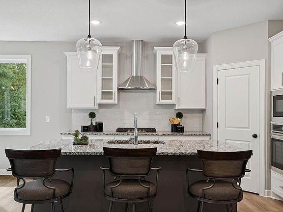 You'll love this custom Rambler plan! Grey board & batten siding, shed roof accent, and spacious front porch welcomes you into this meticulously built home sitting on 2.36 wooded acres overlooking natural wetlands. Gourmet kitchen includes a 4x8 granite kitchen island, vented wood hood with gas cooktop, tile backsplash, walk in pantry, wall oven/micro combo. Main level has three box vaults! Easy to entertain in this home with the dining room opening into the kitchen and great room with a gorgeous fireplace wall. Large master suite with custom tile walk-in shower and double sinks. Mud room features a drop zone and large closet. Convenient main floor laundry. Lower level is completely finished with wet bar/island, workout room, 2 additional large bedrooms and full bathroom. Price subject to change.