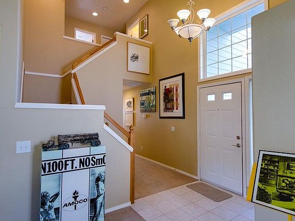Stylish Traditional in high demand Oregon Trail neighborhood and neighborhoodpark! Light filled open plan with soaring vaults. Bright kitchen with hugepantry and built-in desk opens to dining and living room with gas fireplace andcentral A/C. Lovely backyard is fenced and fully usable.