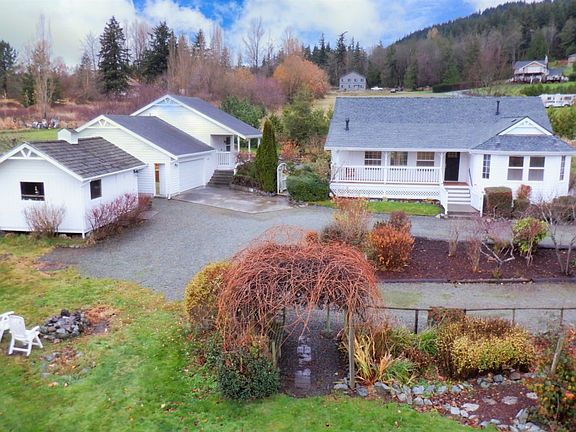 One level country estate on 1.09 acres on a dead-end road with a one-level ADU in desired South Mt. Vernon. 3bd/2ba open floor plan with unique features, heat pumps, oversized Milgard windows, and covered front and rear porches make this home great for entertaining. 3 bedroom septic, many fruit trees and beautiful sunrises. Detached garage+ shop with carport and plenty of parking.