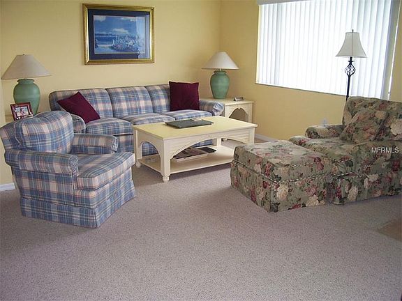 Fully furnished and well maintained 2 Bedroom split plan Maple Model in the 55+ Community of Spruce Creek South. Cathedral ceilings, French Doors to enclosed Lanai with newer acrylic sliding windows & screens & tile floor. Berber carpeting in the other main living areas & tile floors in kitchen & baths. Newer A/C 2009, architectural shingled roof 2004. Large 15x10 golf cart garage. 19x10 covered patio between Lanai & golf cart garage. Stainless double-door refrigerator w/ice & water dispenser in door, stainless glass top range & dishwasher. Won't last long.