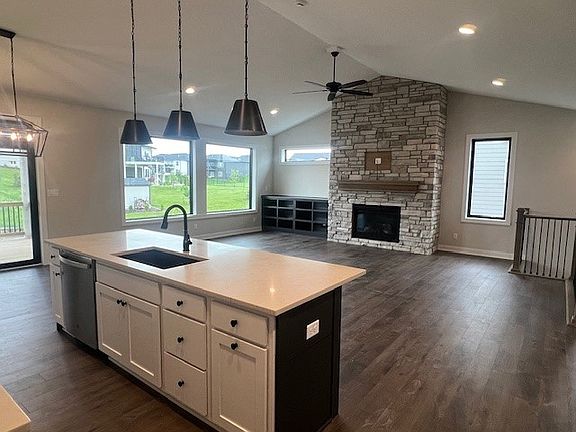 Beautiful Helmsley plan has over 2778 square feet of total living space! An enormous full stone fireplace makes the most beautiful focal point in this floorplan. The large kitchen island is a great space for prepping or enjoying a meal. The stunning matte black finishes really dress up this home. Lower level is finished with a wet bar in the family room area and an additional fireplace. Enjoy your morning coffee or nightcap on the covered back deck. This home will have irrigation and full sod. All information obtained from Seller and public records.