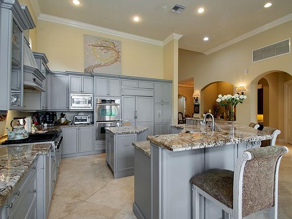 Welcome To This Beautiful 6 Bedrooms, 4 Full Baths ,2 Half Baths, With Total of 5,535 Sq Feet and 2 Car Garages Home in The Gated Community of The Oaks. Grandeur Entrance with High Ceilings and Crown Moldings. Master Bedroom, Playroom/Bedroom and Office Located On The 1st Floor. His and hers Closets Feature Wood Shelves and Beautiful Cabinetry. Eat-in kitchen Complete With An Island and Impeccably Designed with Wood Cabinetry, Opens To The Light and Bright Family Room Overlooking Expansive Lake views and Serene Backyard, Salt Water Pool and Jacuzzi.