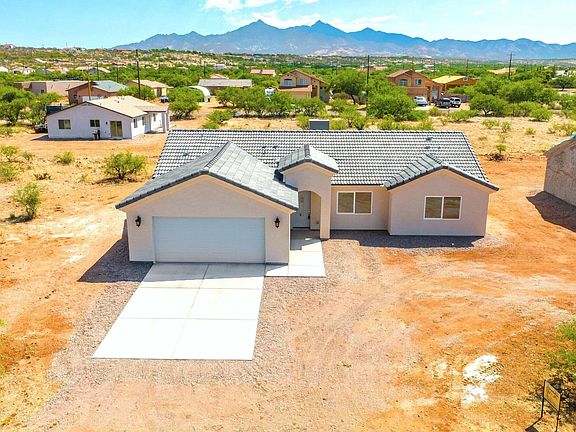 Beautiful new construction home with attention to detail. Included features are synthetic stucco finish, extended garage, water softener connection, tankless water heater, dual flush toilets, tile surroundings in the bathrooms, tile roof & upgraded light /plumbing fixtures. The kitchen includes custom cabinetry w/self-closing cabinet doors, granite countertops, and SS appliances. Just off the kitchen, the open space of the living room & dining room provides plenty of space for the entire family to spread out comfortably. The master bedroom offers a large walk-in closet & dual vanity. The home faces east/west and is surrounded by beautiful desert scenery with incredible views of the panoramic mountain sites. Easy access to 1-19 for travel to Nogales or nearby Tucson
