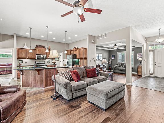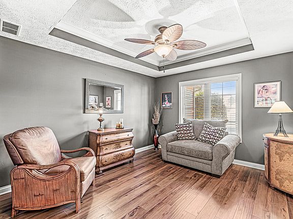 Gorgeous and well kept ranch home with park like fenced backyard! Easy access to miles of walking trails. 3 Bedroom ranch has tall ceilings, open kitchen, flex room for dining or office. Primary suite with double vanities, walk in closet, and garden tub. Custom closet built ins throughout plus in garage for maximum storage. Irrigation, lush landscaping - Gas FP, built in bookshelves, newer laminate flooring, granite countertops, gas cooktop, and cubbies. Selling with all appliances - and home offers ideal location with ultimate privacy!
