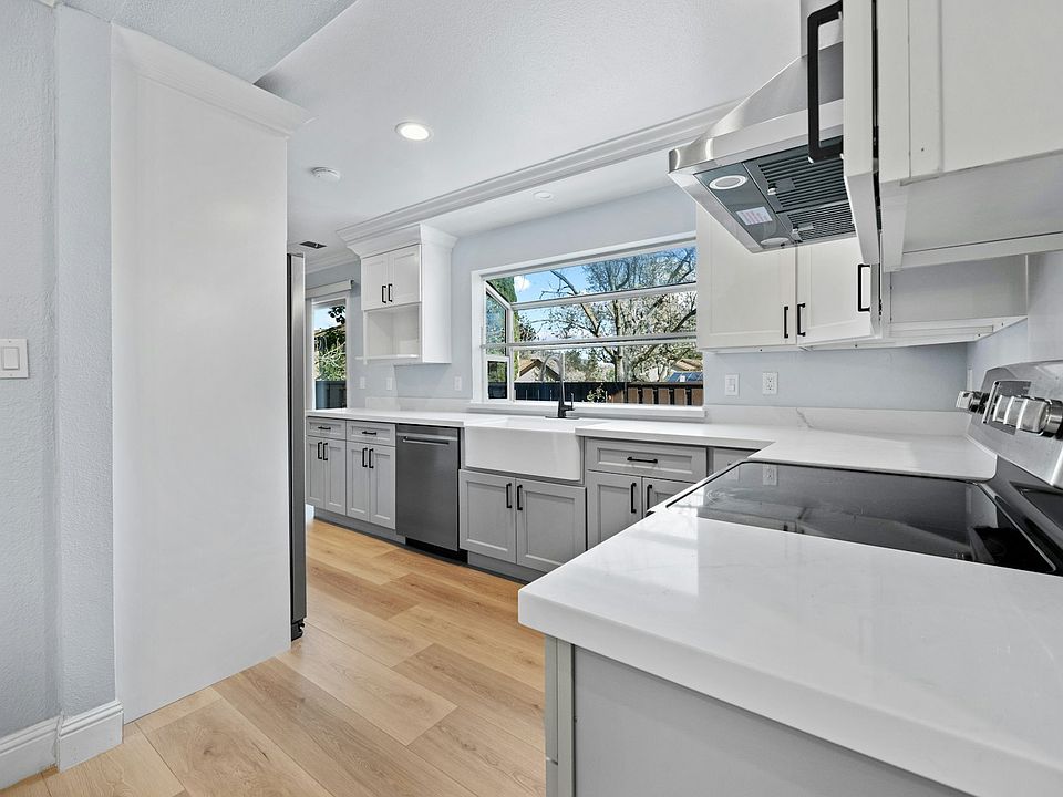 WALK TO BART! Only a few min walk! Countrywood home in Great Location of complex, featuring 3 bed 2.5 bath, Brand new QUARTZ Kitchen with great finishes, LOTS of wood cabinets, large Living and Dining Room areas, updated kitchen w/cozy breakfast nook, stainless steel appliances, and Beautiful large garden window overlooking greenbelt, large master, crown molding throughout, new dual pane windows/window coverings and doors, HVAC, landscaped front, and Back Patios, Detached Garage, Walk to Countrywood Shops, Safeway, Restaurants, Bart, Heather Farms Park walking trails Move-in Ready, Come and see GreenBelt/Community Pool/Water are all paid for by Owner. NO SMOKING. 1-year lease is required. Security deposit $4000. Small dogs OK. All other utilities are the tenant's responsibility.