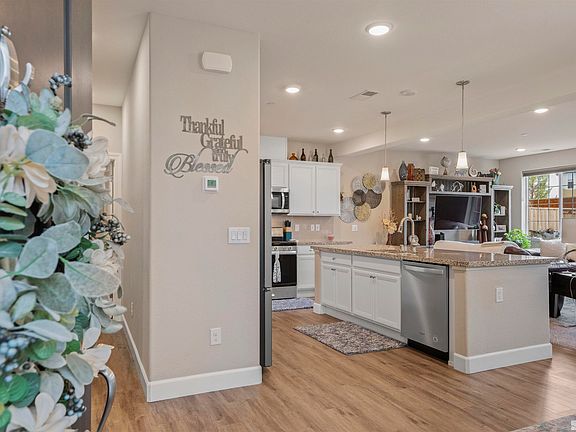 Discover modern luxury in this 3-bed, 2.5-bath, 2-car garage condo townhouse in South Reno. Enjoy elegant vinyl plank & carpet flooring, a stylish kitchen with gray backsplash, white-cream cabinets, & granite counters. Take advantage of the community gym, a quaint back patio, and an upstairs laundry room. Conveniently located in South Reno, you're minutes away from shopping, dining, and entertainment. Additionally, the residence is less than an hour from Lake Tahoe, enhancing its location. Don't miss out!, 1,833 sq ft., 2-story. Whirlpool microwave and dishwasher. Stainless steel appliances. Pitched tile roof. Wood vinyl planks and carpet downstairs. Ceramic tile and carpet upstairs. Shades on windows throughout. Great room, open-floor plan downstairs. Mudroom separates front entrance and garage. Landscaping maintained by the HOA.