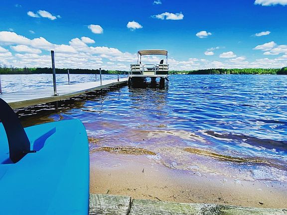 Shhh! Do not tell the relatives that you purchased this 2BR/2BA waterfront home on 339-acre Carpenter Lake… They will want to sleep on the lakeside deck, use your boats, fish off your pier, or even camp on the level emerald, green lawn, eat your food, and drink your beer. Not to mention they will fall in love with the sandy shoreline that is the envy of the town for this kind of sandy swimming frontage is a rare find in Northern WI. The house is charming as can be with wall-to-wall views of the lake from the open concept kitchen/living/dining area complete with a fireplace and knotty pine woodwork. Sitting on .75 acres with 109’ of frontage this home is rounded out with a 2-car attached garage, carport, and backup generator. So act now so your family can start inviting themselves over!