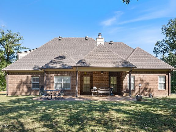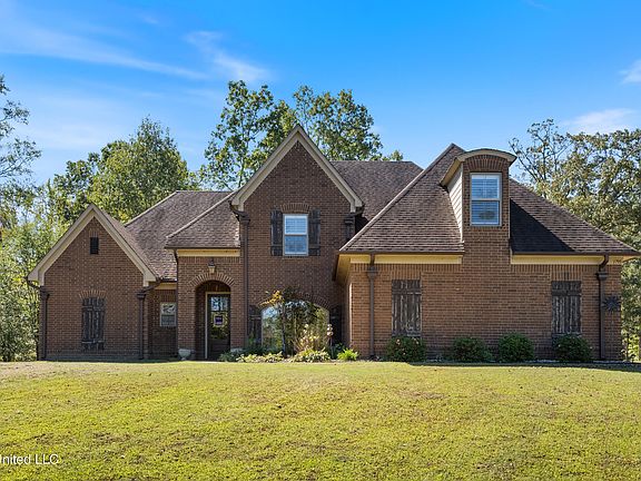 Come see this custom built home on 11.64 acres of your own hunting land located in Hernando. The back portion of the land is wooded and this land is near the corp of engineer land at Arkabutla. The owner has killed several large deer on his property over the years from hunting out of his shop window. The home was built in 2016 and is immaculate. The entry foyer leads into a large den and kitchen with an open floor plan concept . The kitchen has custom cabinets and a large kitchen island with sink. The oven and microwave are built in and there is a breakfast nook and a breakfast bar area with granite countertops . The kitchen overlooks the den which has a wood burning fireplace with stone on it and a rustic wood mantle. The formal dining room has beautiful arched windows overlooking the front of the property. It has plenty of room for a large dining table . The entire downstairs has stained and scored concrete floors in a beautiful amber color There is also upgraded lighting throughout the home and all the windows except for dining room have plantation shutters. The master is also large and has his and her closets. The bath features a large tub and separate tile shower with built in seat, his and her vanities, and a linen closet.