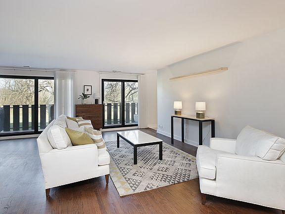 BEST VIEWS in the building! This HIGH 1ST FLOOR CONDO WITH BALCONY faces north looking over a large expanse of open space, framed with trees. So much has been updated recently. Refinished wood floors flow from the foyer into the living and dining rooms. The living room has TWO brand new Pella Architectural Series sliding doors opening to the large balcony. New custom floor to ceiling drapes on both of these doors. There is an adjacent sitting area with a cozy gas fireplace. The formal dining room has a new chandelier and new LED recessed lights. Even the baseboards are new. A second entry to the kitchen has been created from the living room, increasing the light and flow through both rooms. The galley kitchen with stainless steel appliances includes a new French Door refrigerator. New light fixture over the eating area which also has a new window overlooking the open space outside. New carpet in both bedrooms. The primary bedroom has plenty of room for a kingsized bed. Custom room darkening curtains and wall sconces are new. Huge walk-in closet with organizers. Beautiful new white wood vanity, mirror and light in the private bath. Second bedroom has an amazing new custom closet with interior lighting. There is also a new custom cabinet under the window. New shade above it is electronically controlled. The laundry room has been redesigned with new, full size front load machines and storage shelves. Underground heated parking space #16. Two storage units, both on the same floor as this condo. Building has an exercise room, party room and outdoor pool. Stoplight at entrance makes getting in and out of the complex easy. Short distance to entrance to highway. Restaurants, grocery stores and Northbrook Court Mall are all nearby!
